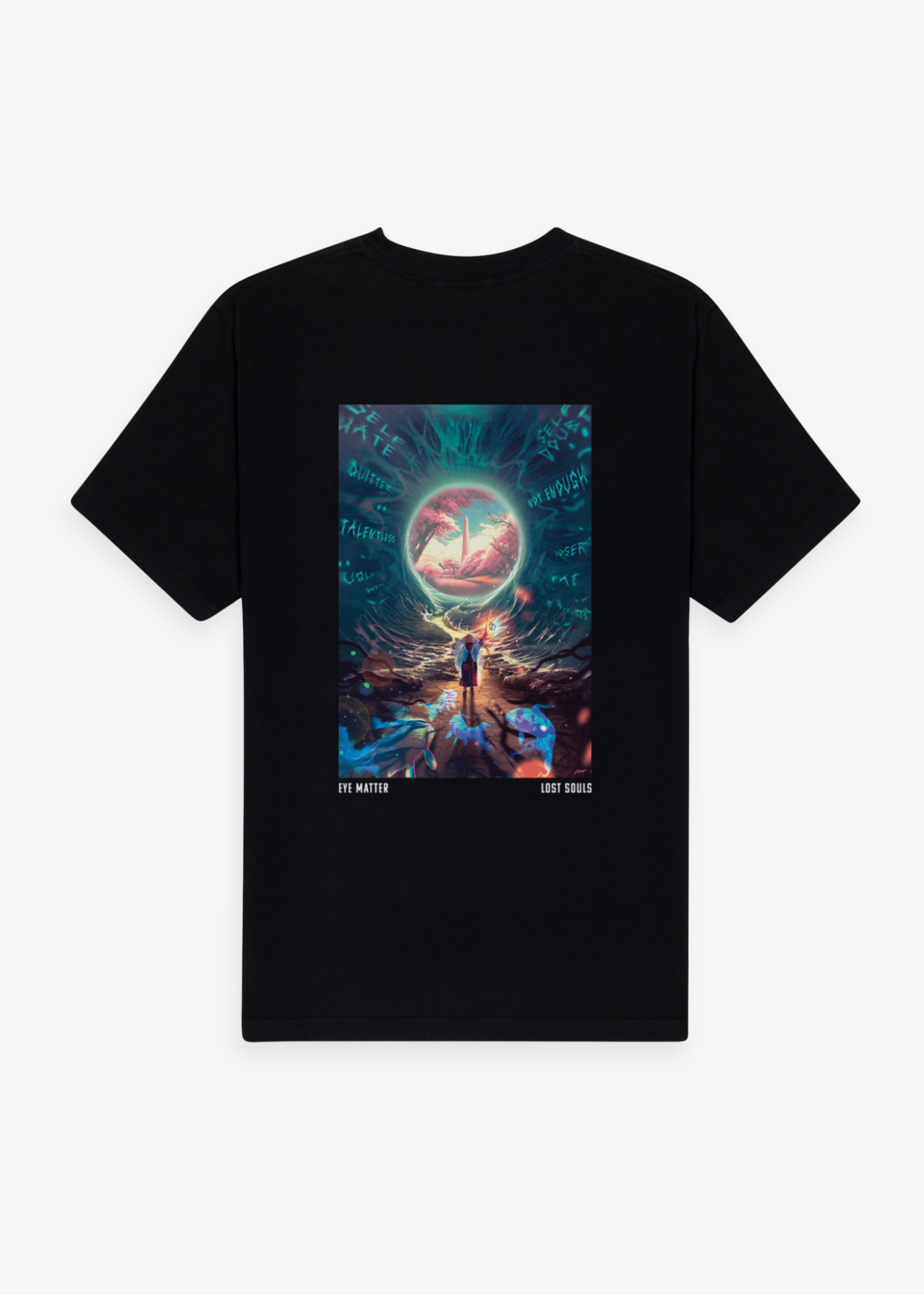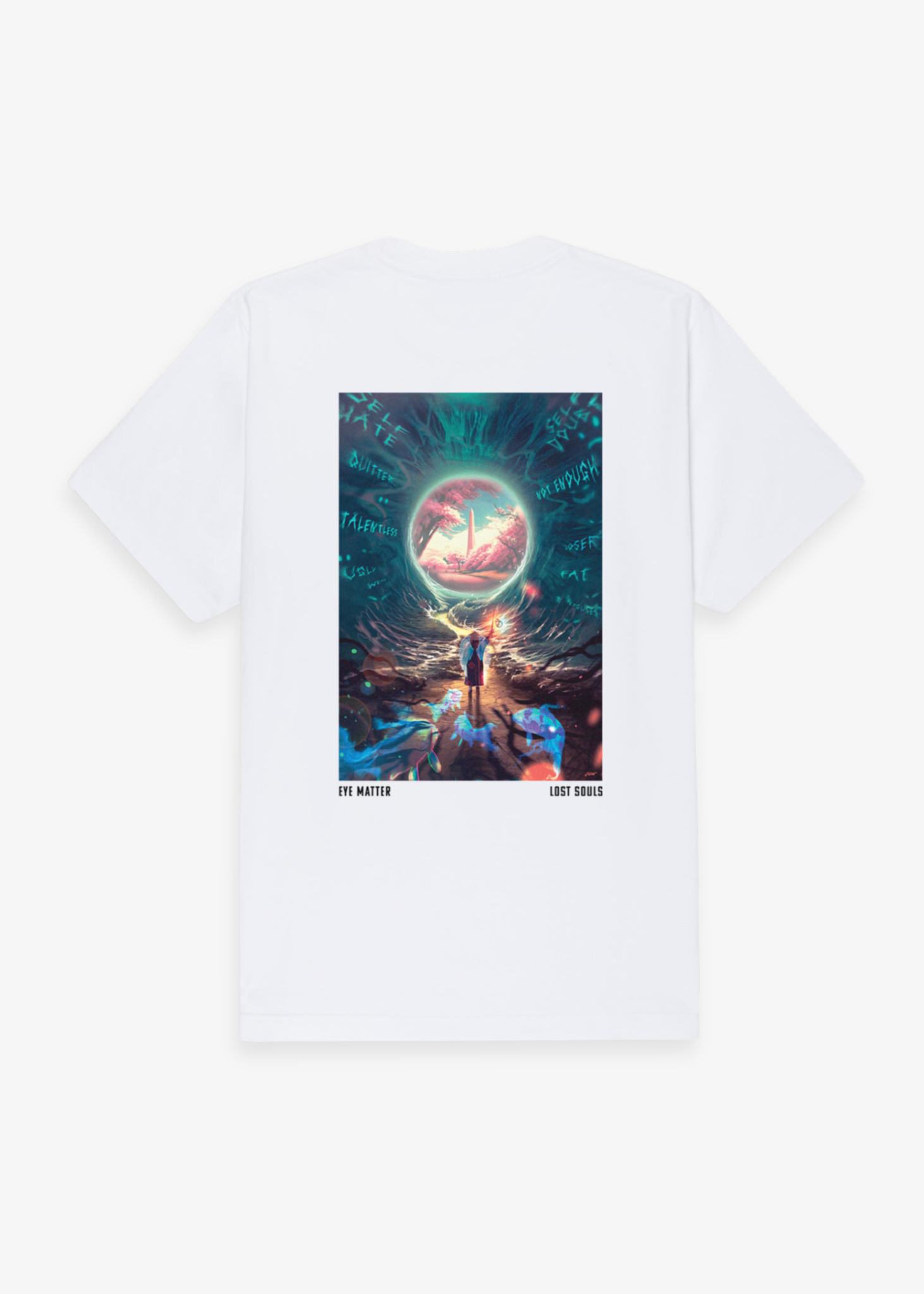 The "Eye Matter" Tee, crafted from 240GSM premium organic cotton, combining comfort with durability. Featuring our logo on the chest and high-quality graphic print on the back, it marks the sequel piece to G.I.S.T. in the "Lost Souls" capsule collection.